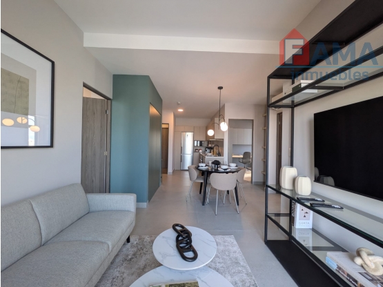 - Área de cocina, sala y comedor. Con salida a balcón que tiene puerta ventana de piso a techo